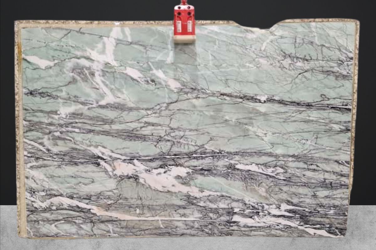 גווני ירוק בהיר עם עורקים כהים ובהירים, מרקם נוזלי עם תחושת זרימה עמידות גבוהה וחוזק אופייני לקוורציט.