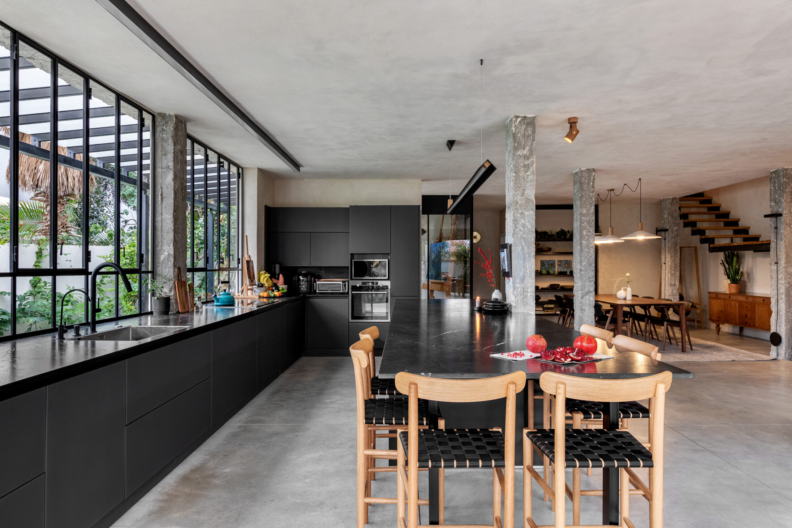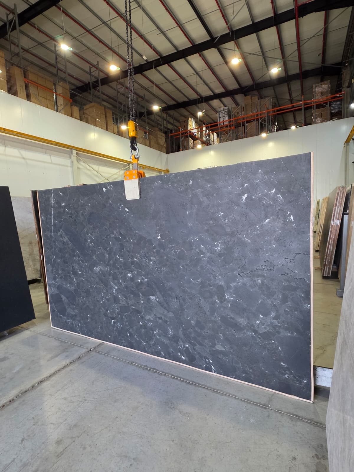 נגרסקו Negresco גרניט דרמטי בעומק שחור־פחם עם טקסטורת גבישים טבעית בגווני אפור בהיר ולבן הנמתחת לאורך הלוח בתצורות אורגניות חופשיות האבן מאופיינת בקונטרסט חד ובמרקם חי וייחודי השומר על איזון בין עוצמה לאלגנטיות החומר מביא איתו נוכחות עיצובית בולטת שמתאימה למרחבים מודרניים ונועזים במיוחד.