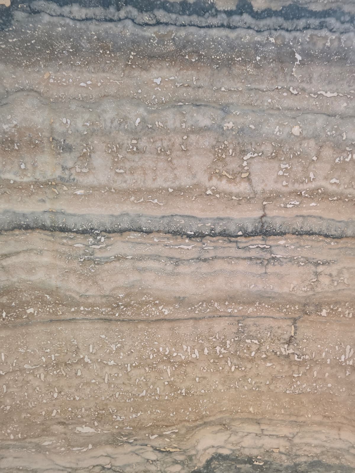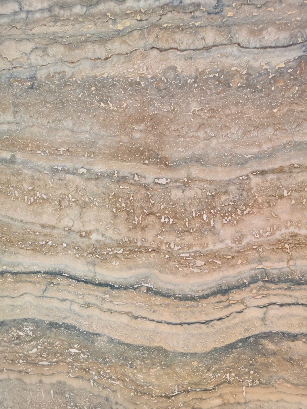 טרברטין רומנו בלואבן Travertine Romano Blue טרברטין טבעית בגוונים מעושנים של אפור כחול ובז. שכבות רכות שמתפתלות זו בתוך זו ויוצרות טקסטורה גיאולוגית מרהיבה. שילוב בין חמימות של טרברטין קלאסי לקו עיצובי דרמטי ומעודכן.
