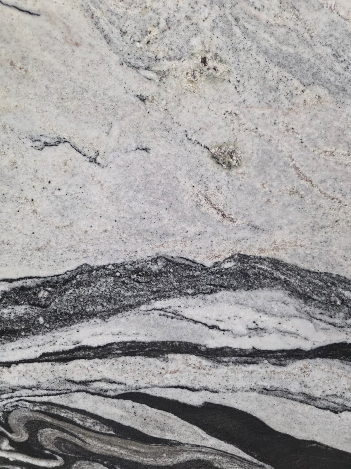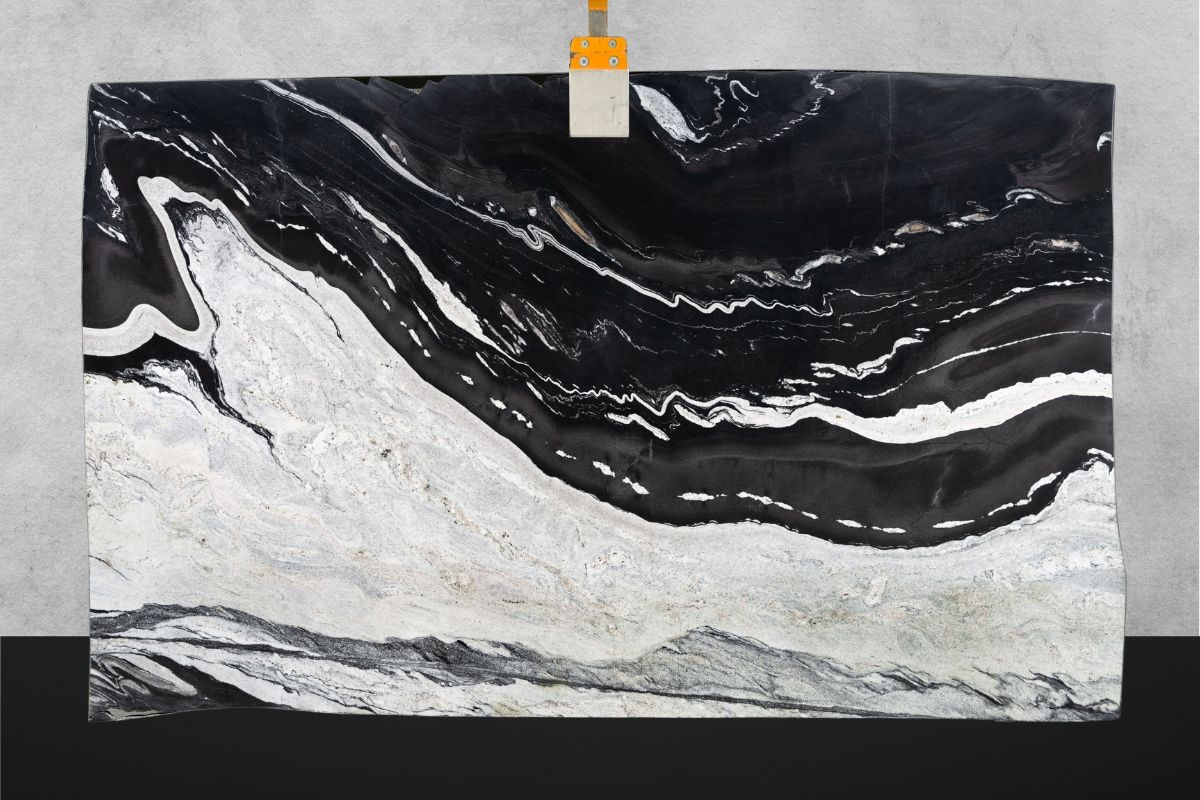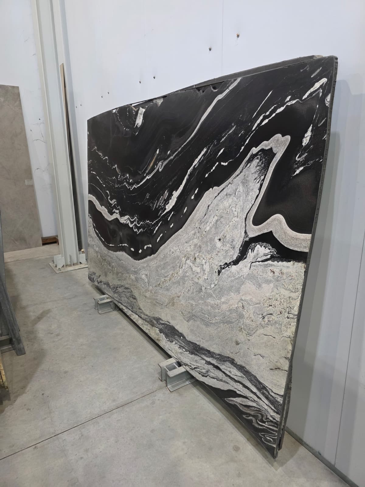 שיש קופקבאנה Copacabana עוצמתי בגווני שחור ולבן עם תנועה סוערת ואנרגטית דוגמת גלים מסתחררת שמזכירה סערה בלב ים. בחירה דרמטית שמכניסה עומק ותעוזה לכל חלל.